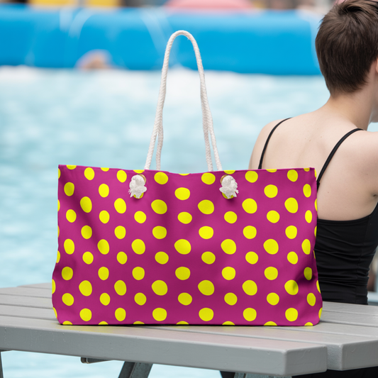 Yellow Polka Dot Red Weekender Bag