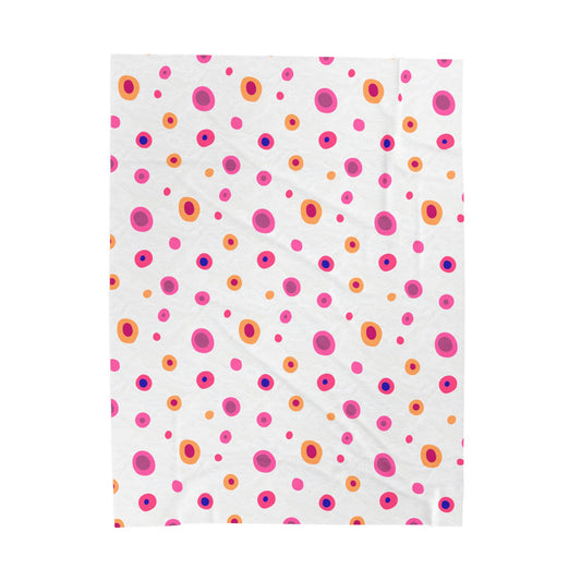 Circles Pink and Yellow Large Velveteen Plush Blanket