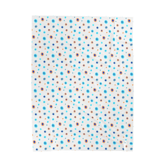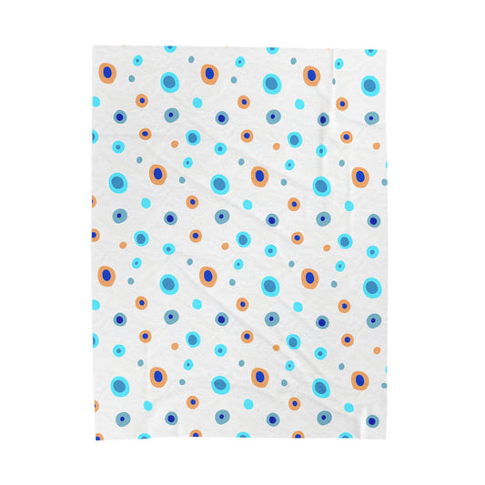 Polka Dots Blue Velveteen Plush Blanket Cozy Soft Warm Stylish Decor