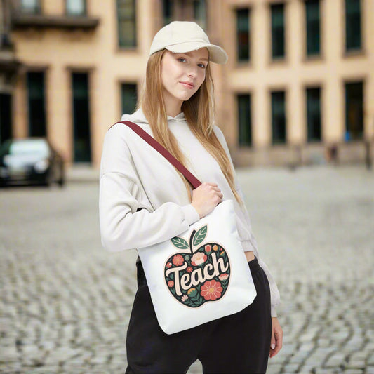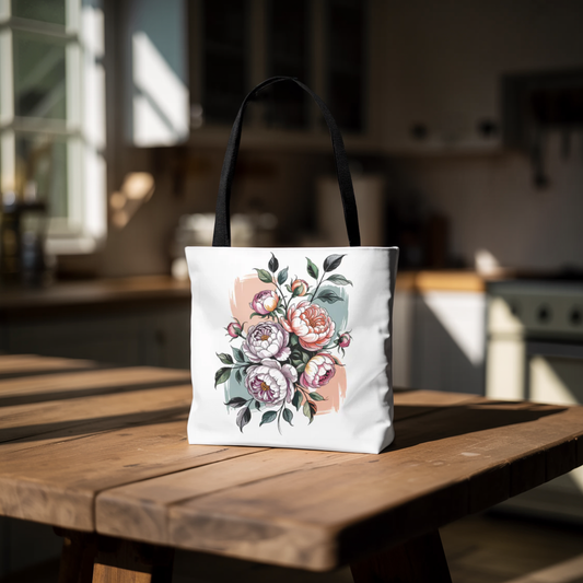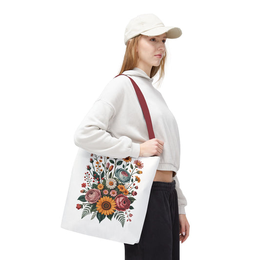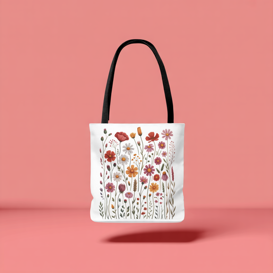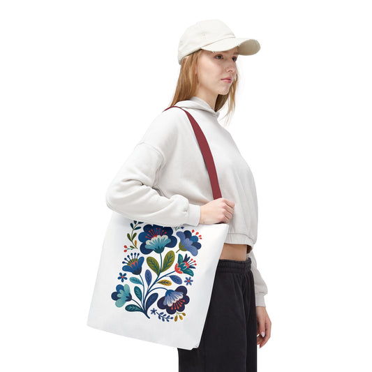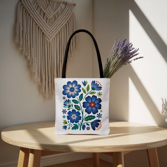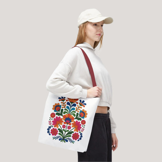 Folk Art Floral Faux Embroidery Style Tote Bag