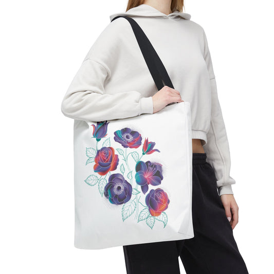 Vibrant Rose Silhouettes Neon Floral Tote Bag