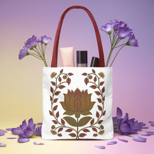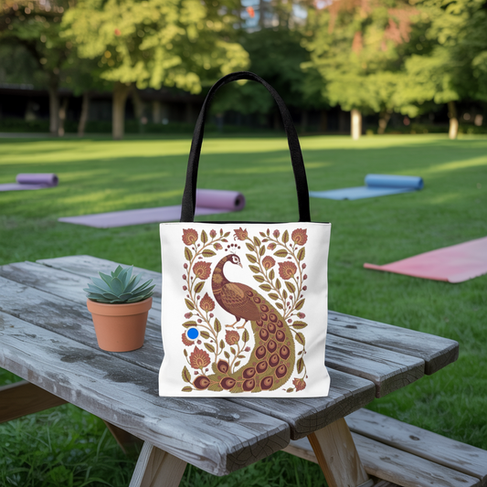 Peacock Tote Bag with Floral Vines and Paisley Motifs